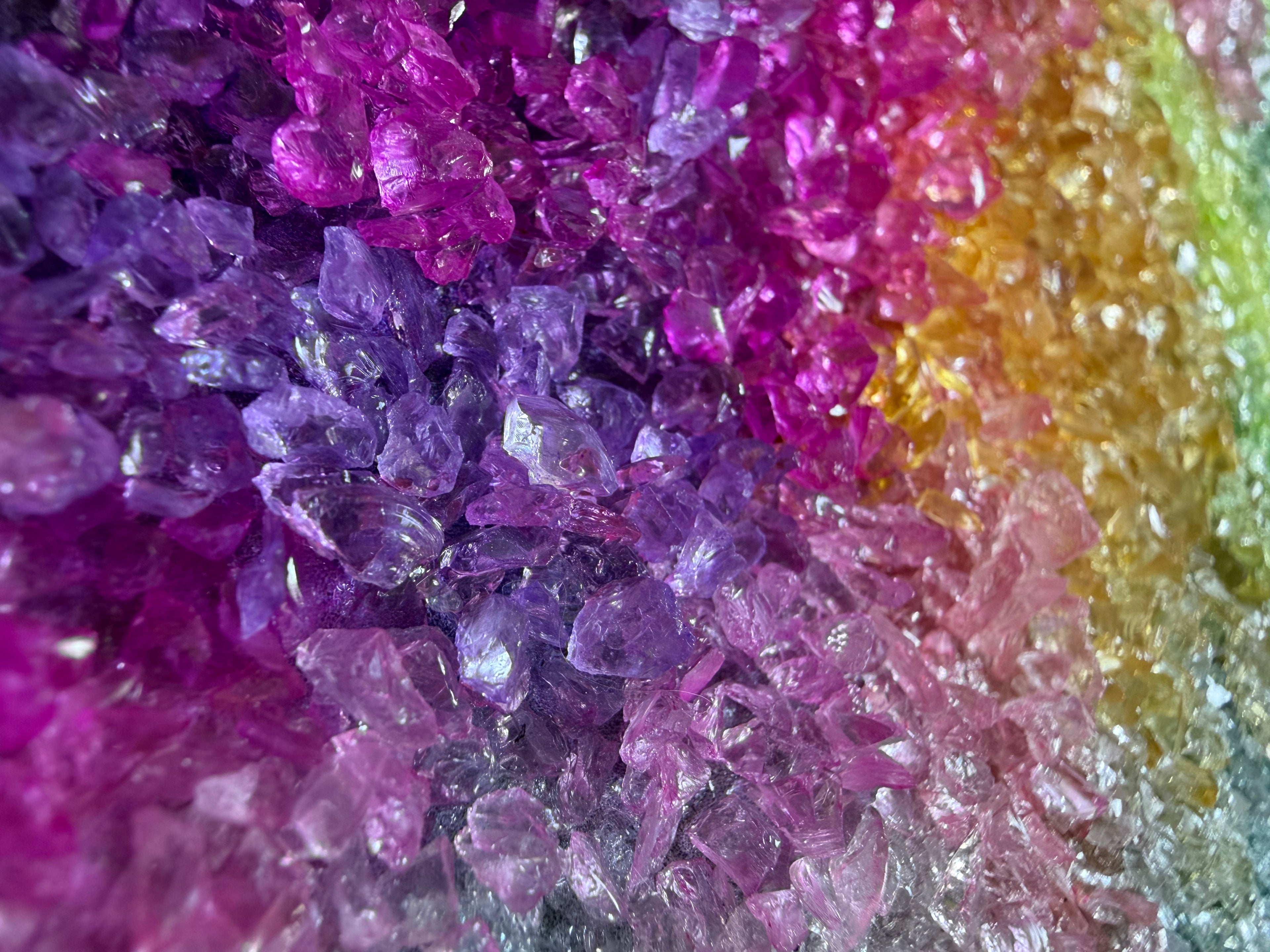 By using various materials such as glass, crystal, gemstone, rock, and seashells; all carefully matched to the canvas at hand, something new and stunning emerges.